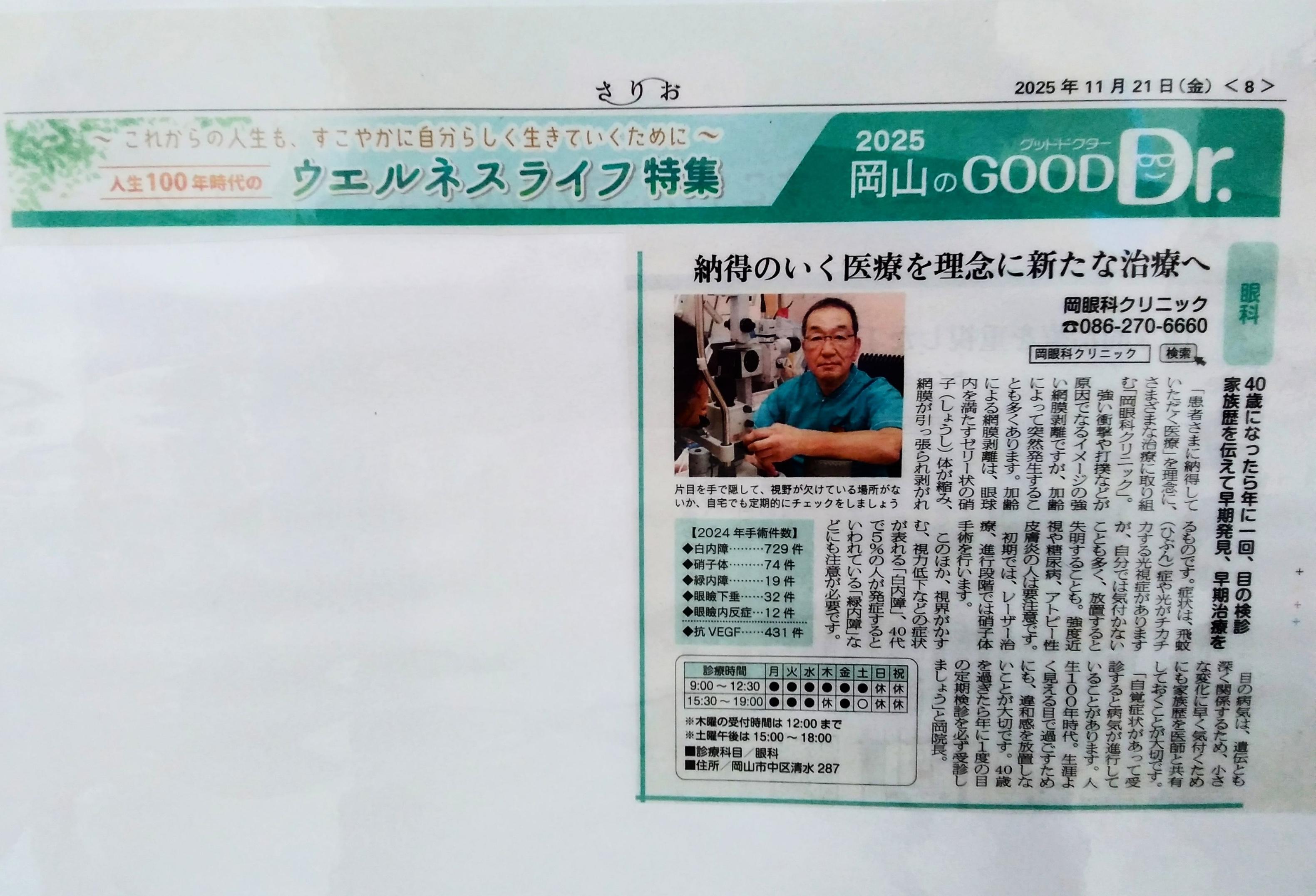 2025年11月21日号のさりおに岡眼科クリニックが掲載されました。